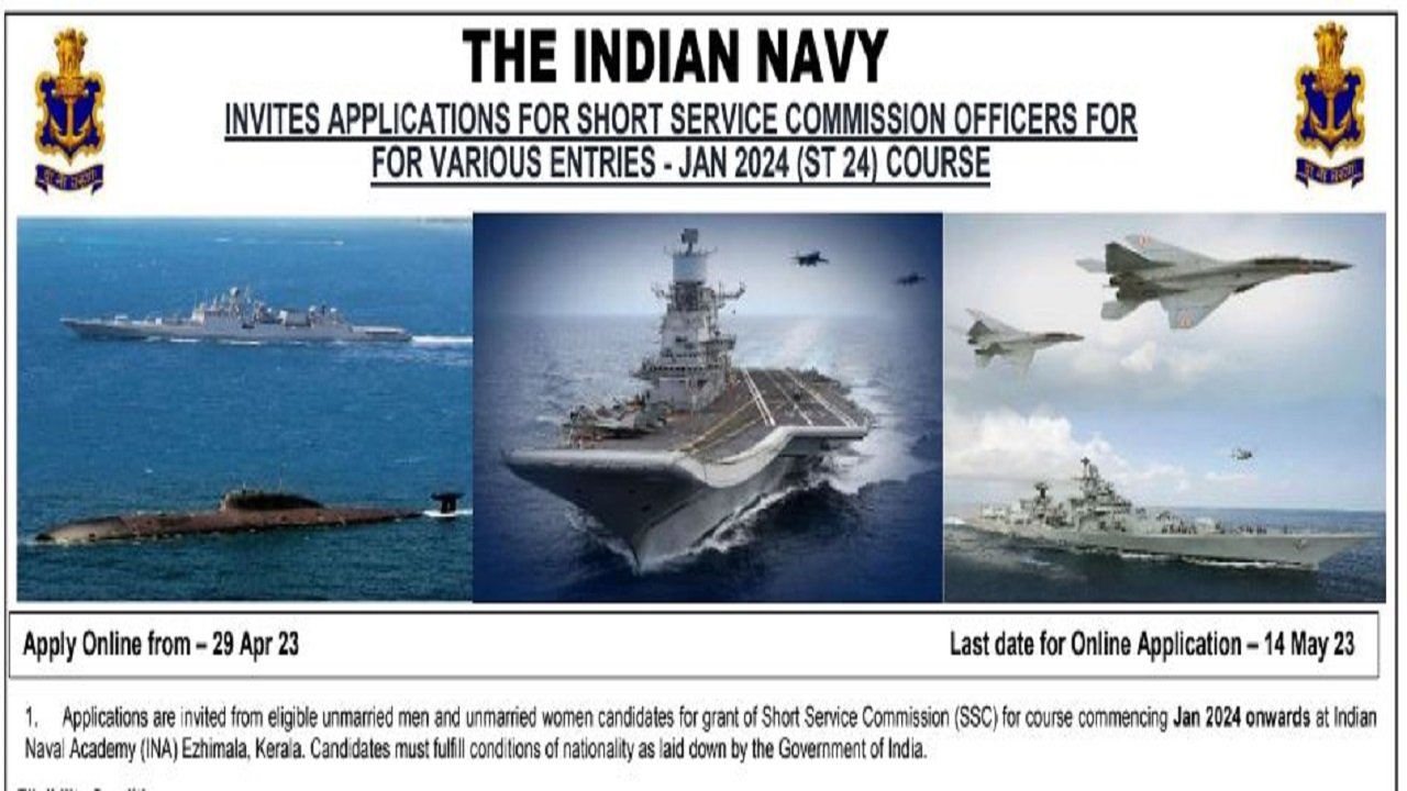 Indian navy recruitment 2024, apply online for cadet entry.